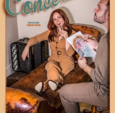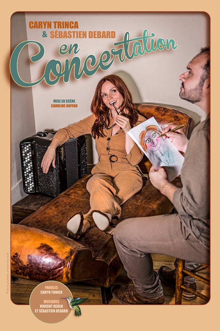 "De jolis texte sur des mélodies jouées en live au piano et à l'accordéon par Sébastien Debard le tout accompagnée par la jolie voix et l'énergie de Caryn Trinca !!! Du rire, de l'émotion, de la dérision, un superbe cocktail thérapeutique !!"