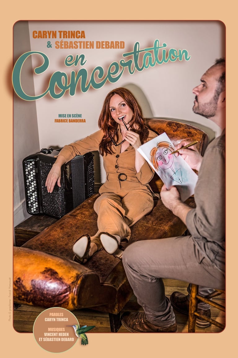 "De jolis texte sur des mélodies jouées en live au piano et à l'accordéon par Sébastien Debard le tout accompagnée par la jolie voix et l'énergie de Caryn Trinca !!! Du rire, de l'émotion, de la dérision, un superbe cocktail thérapeutique !!"